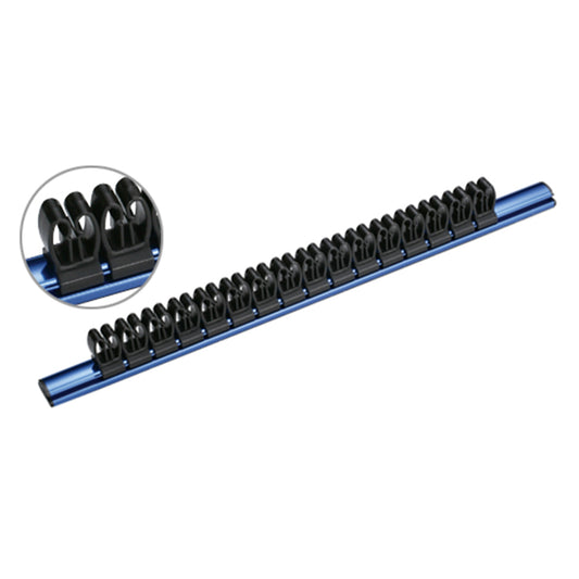 16-teiliger Steckschlüsselhalter aus Aluminium mit 1/4-Zoll-Antrieb, Steckschlüsselschiene mit Kunststoffclip zur Werkzeugorganisation (440-ALN243216)
