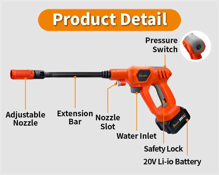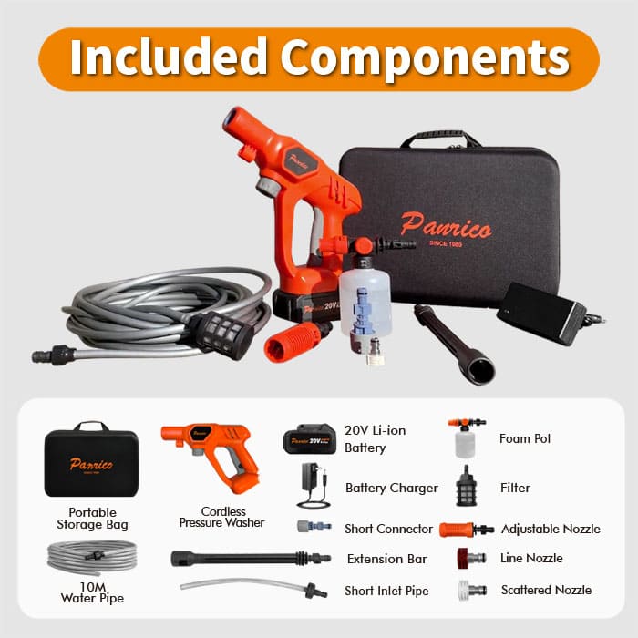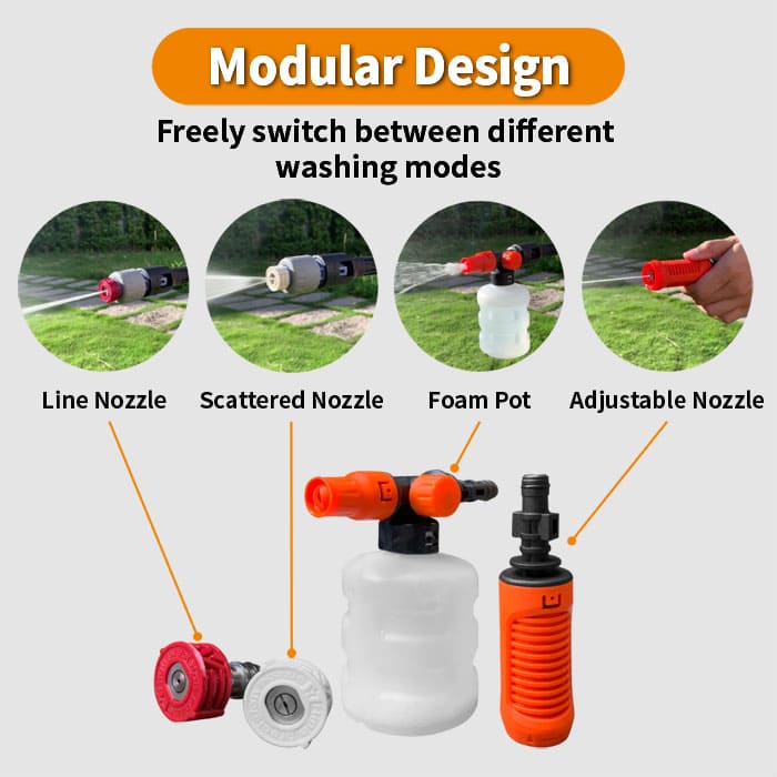 利便性、スピード、携帯性、省エネなど優れた機能を追求し、車好きや家庭掃除好きの方向けに開発されました。屋外のエアコン洗浄にも最適です。軽量でハンドキャリーバッグに収納しやすい。10mの給水パイプと高効率リチウム電池が付属。